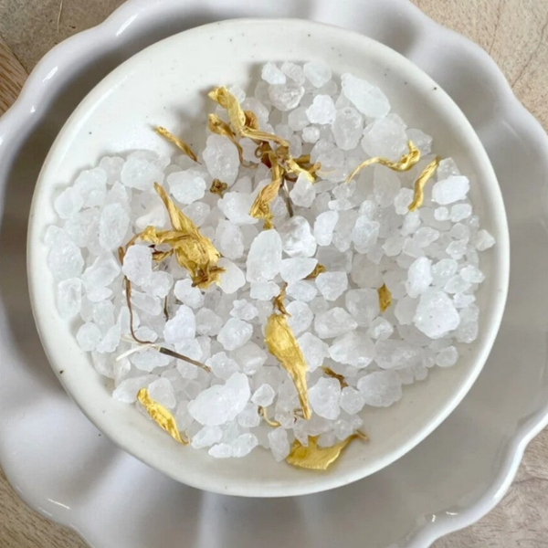 Zakje (voeten)badzout met goudsbloem.Een heerlijk ontspannen cadeautje voor je zus, vriendin, buurvrouw, collega of wie je ook wilt verassen!Geen bad, geen probleem, neem dan 1 eetlepel badzout voor een heerlijk voetenbad.