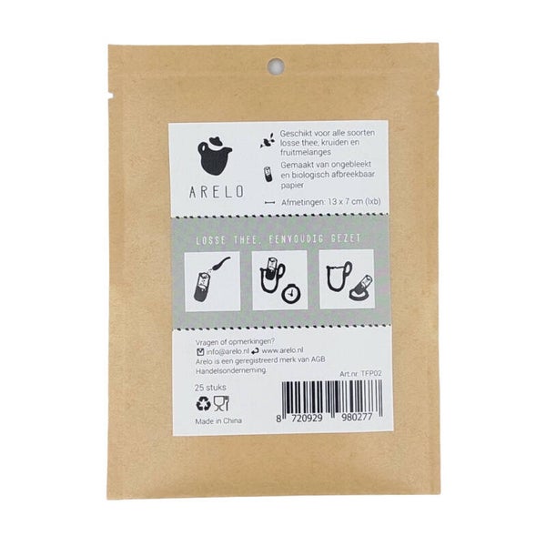 ARELO papieren theefilters zijn ideaal voor het gebruik van losse thee, kruiden en fruitmelanges. De zakjes zijn ongebleekt en biologisch afbreekbaar. Geschikt voor een glas of kop thee.