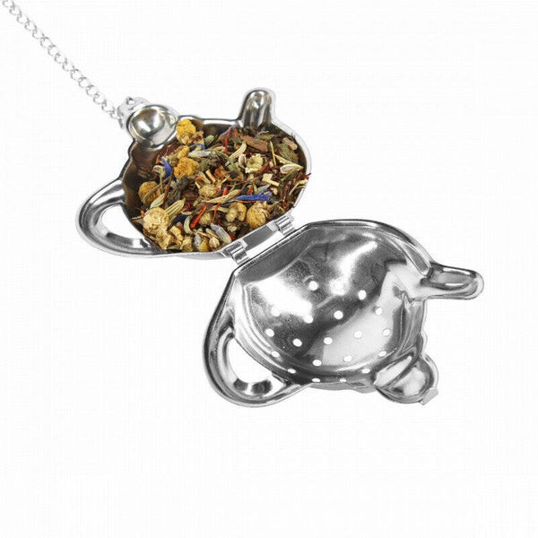 Handig theezeefje in de vorm van een theepot. Zet je losse thee op een leuke manier! Leuk voor in cadeaupakketten en het zeefje past door de brievenbus.