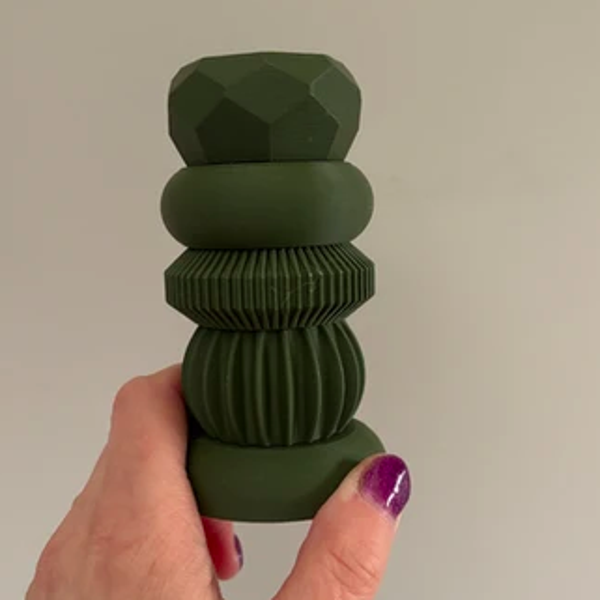 Onze modulaire kandelaar bestaat uit losse onderdelen die je helemaal zelf kunt combineren. Begin met de ‘basis’, voeg verschillende ‘shapes’ toe en… stapelen maar! :)